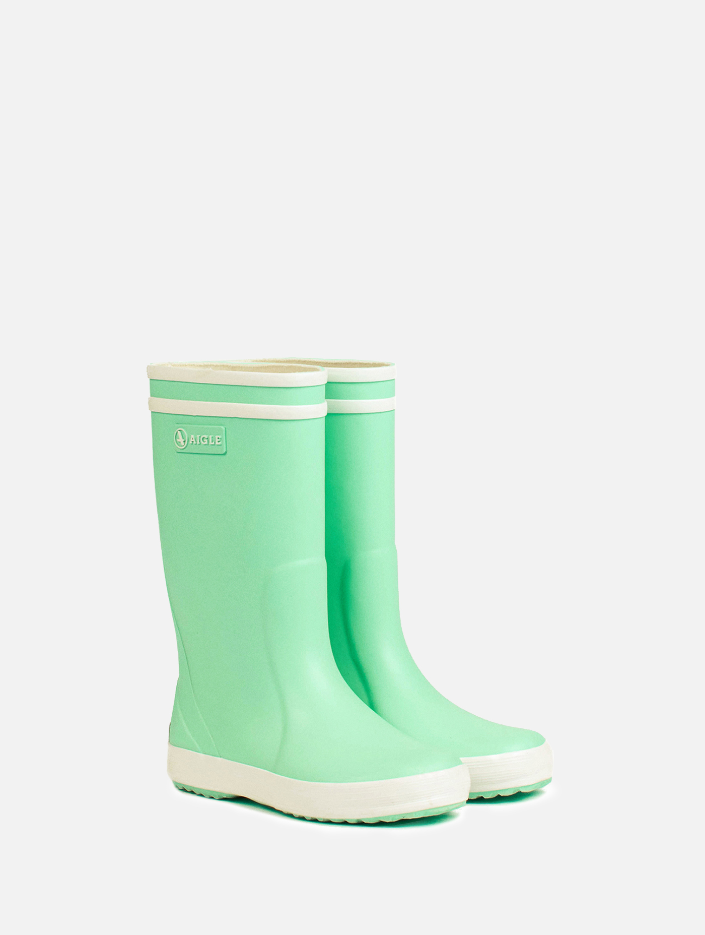 Flic, flac, pop. Depuis 40 ans, c’est la botte de pluie idéale pour affronter la pluie et sauter dans les flaques ! Reconnaissable entre toutes avec sa double bande blanche, elle gardera les pieds de vos enfants au sec toute l’année.