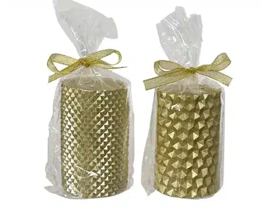 / BOUGIE pilier métallique et paillettes – Kaemingk