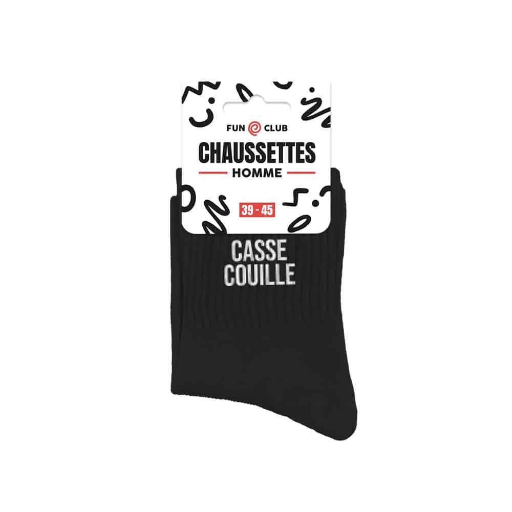 CHAUSSETTES NOIRES CASSE COUILLES HOMME. À la recherche d’une paire de chaussettes originale et humoristique qui tient au chaud ? Notre paire de chaussettes « Casse Couille » est la paire idéale !