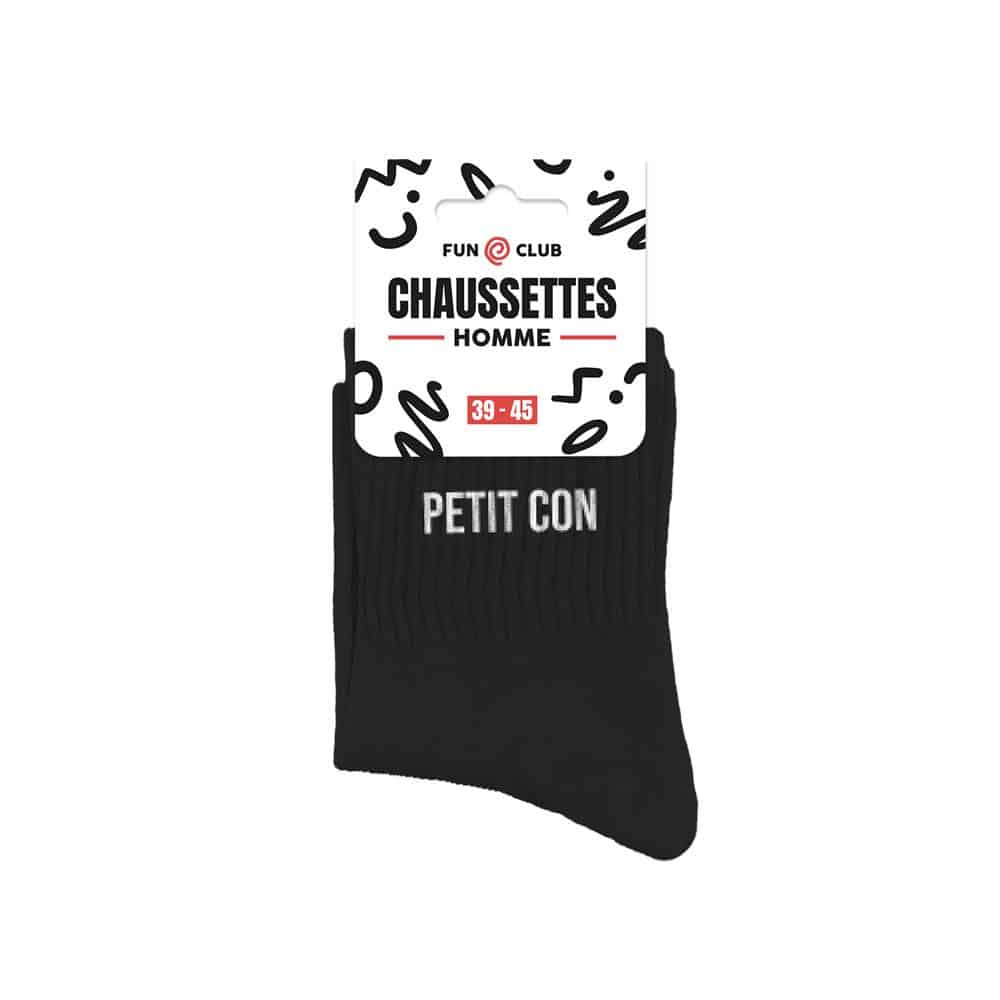 CHAUSSETTES NOIRES PETIT CON HOMME. À la recherche d’une paire de chaussettes originale et humoristique qui tient au chaud ? Notre paire de chaussettes « Petit Con » est la paire idéale !