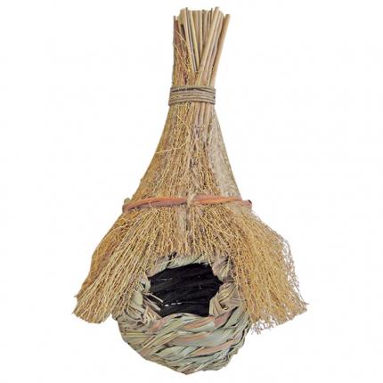 Nichoir décoratif, à suspendre. Tressage en osier et toit en paille.