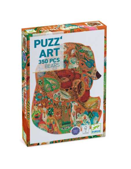 Découvrez le puzzle Ours de la collection Puzz’art de Djeco, un puzzle de 350 pièces au format inédit sans coins ni bordures pour les enfants dès 7 ans. Un bel ours avec son bébé qui vous demandera de la patience et de la concentration.