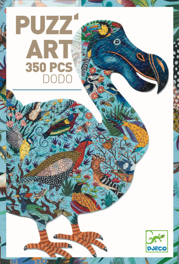 Découvrez le puzzle Dodo de 350 pièces, un Puzz’art Djeco au format inédit sans coins ni bordures pour les enfants dès 7 ans. Un oiseau qui vous demandera de la patience et de la concentration.